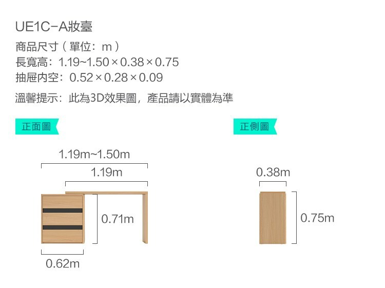 *注意:以下為情境示意圖,實際商品款式為北歐原木風抽屜櫃附鏡可伸縮化妝桌 UE1C