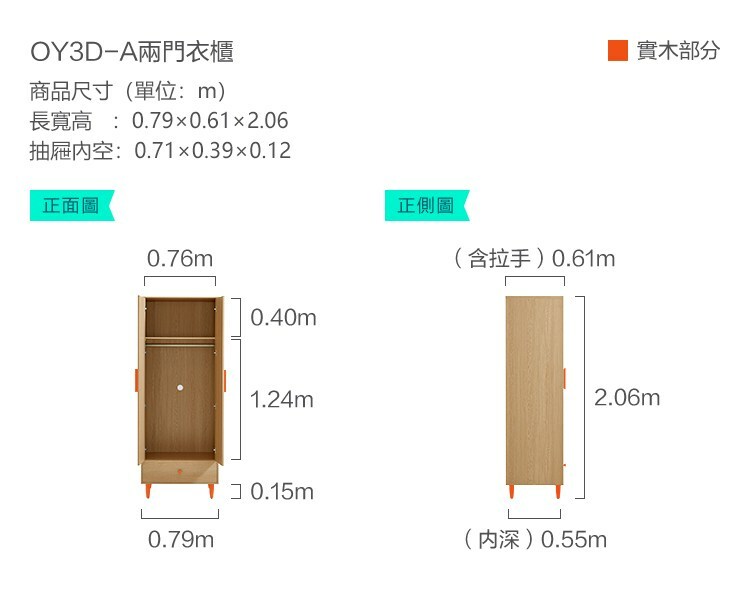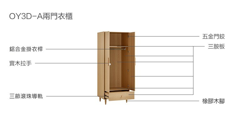 *注意:以下為情境示意圖,實際商品款式為四季小戶型雙門衣櫃 OY3D-原木色