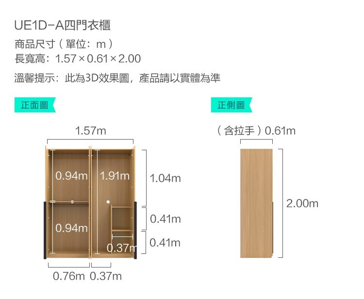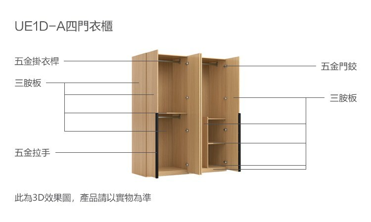 *注意:以下為情境示意圖,實際商品款式為北歐原木風四門衣櫃 UE1D