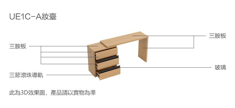 *注意:以下為情境示意圖,實際商品款式為北歐原木風抽屜櫃附鏡可伸縮化妝桌組 UE1C (附妝凳 JF1H)