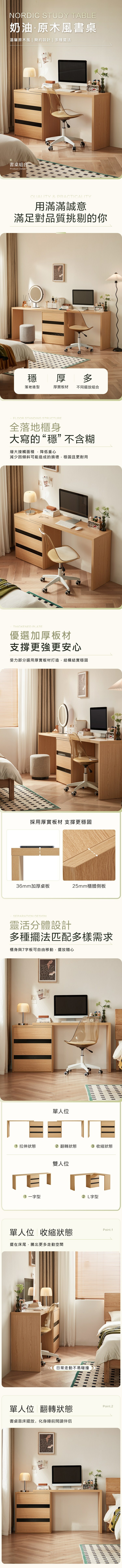 *注意:以下為情境示意圖,實際商品款式為北歐原木風抽屜櫃可伸縮化妝桌 UE1C
