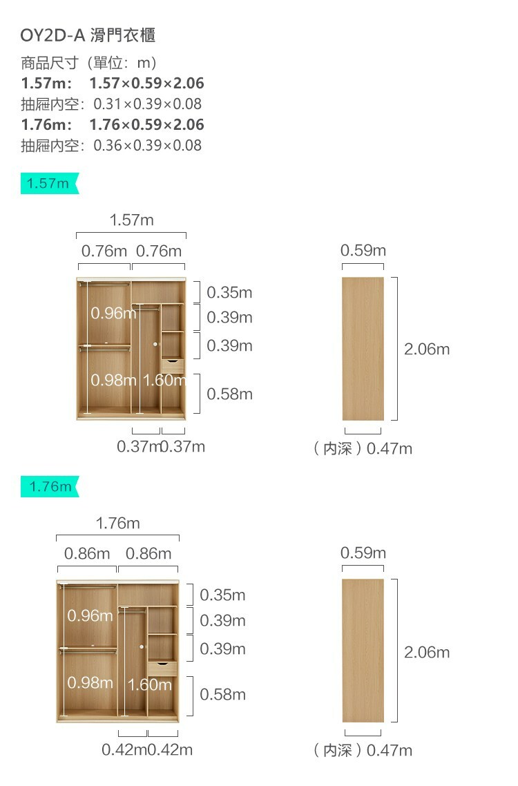 *注意:以下為情境示意圖,實際商品款式為四季小戶型1.76M滑門衣櫃 OY2D-原木色