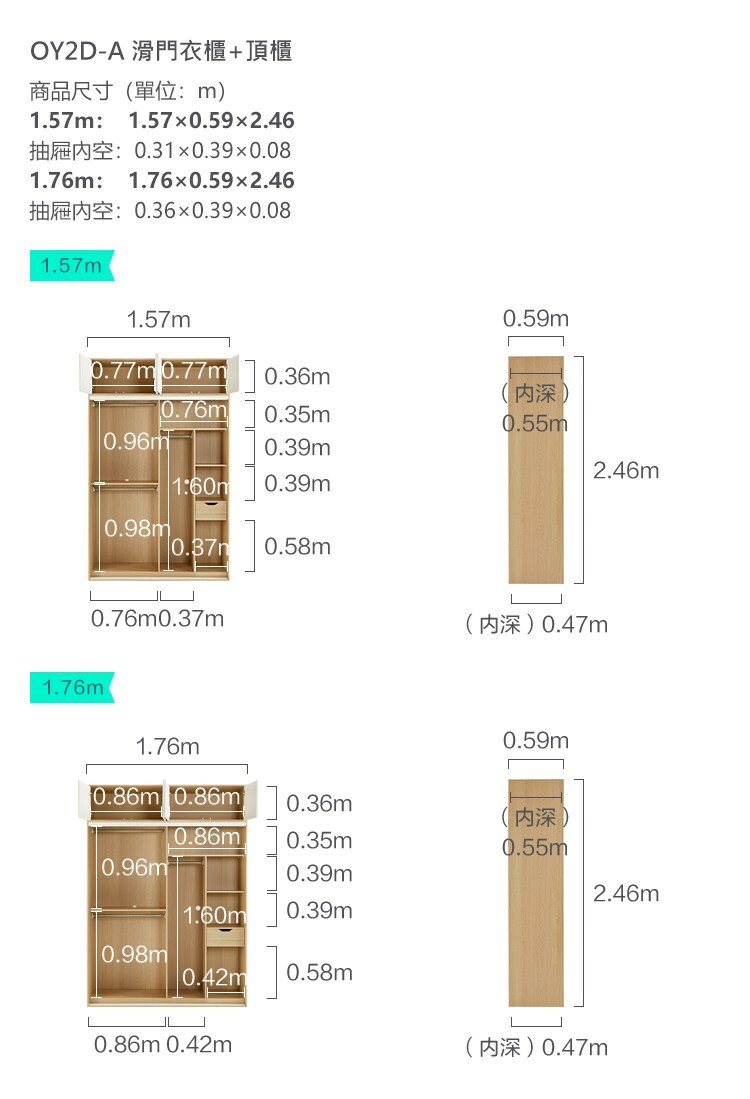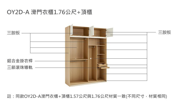 *注意:以下為情境示意圖,實際商品款式為四季小戶型1.57M滑門衣櫃 OY2D-原木色 (附頂櫃)
