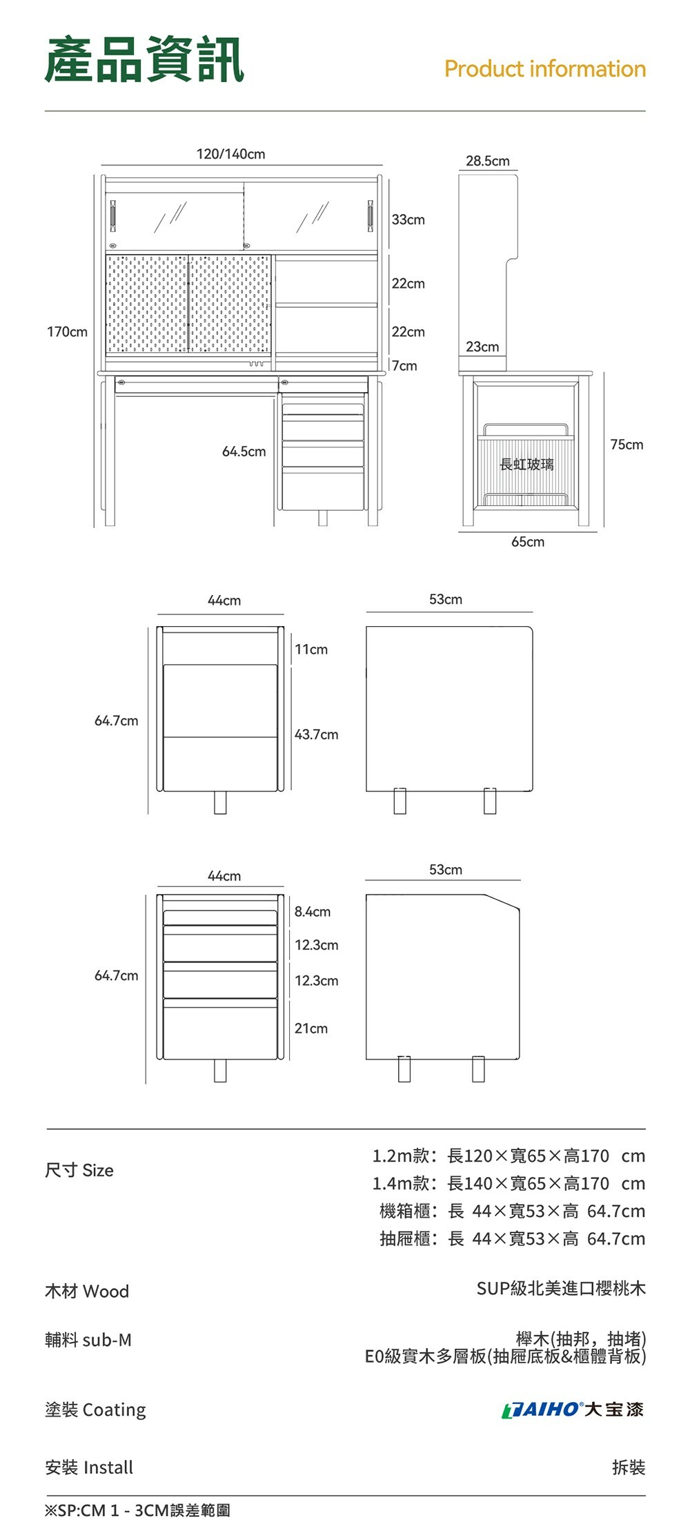 *注意:以下為情境示意圖,實際商品款式為海角櫻桃木1.2M書桌+桌上書架