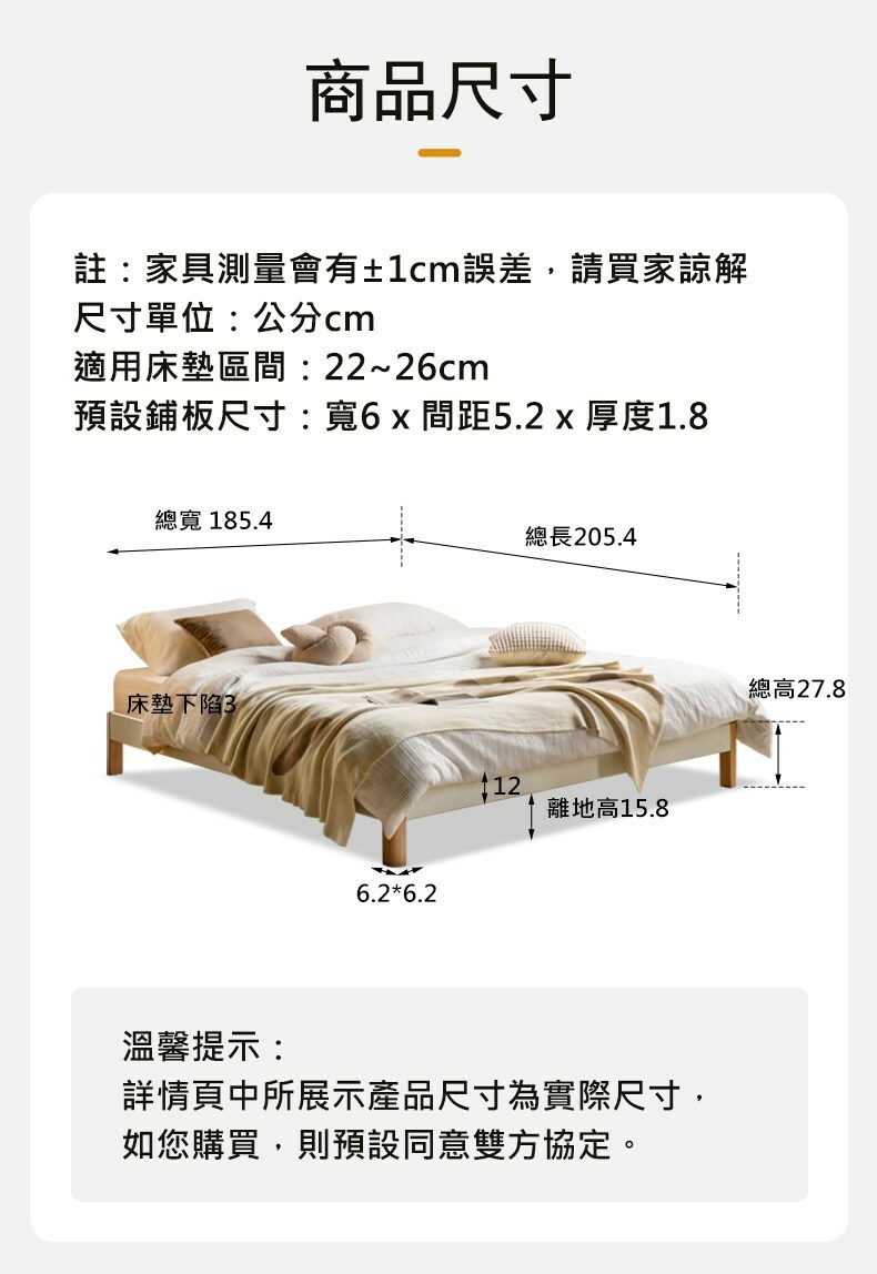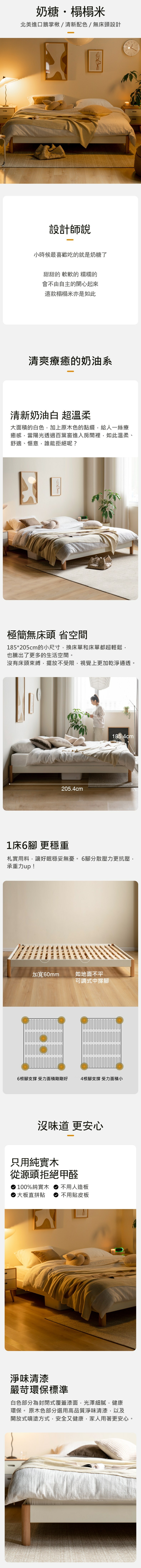 *注意:以下為情境示意圖,實際商品款式為奶油風實木雙人加大180x190床架 Y00B26