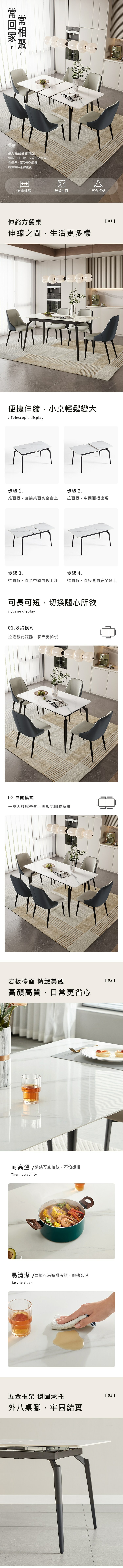 *注意:以下為情境示意圖,實際商品款式為輕簡伸縮岩板餐桌 LS663-黑色
