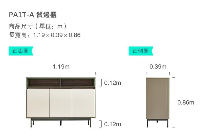 *注意:以下為情境示意圖,實際商品款式為自然森林1.2M儲物餐邊櫃 PA1T