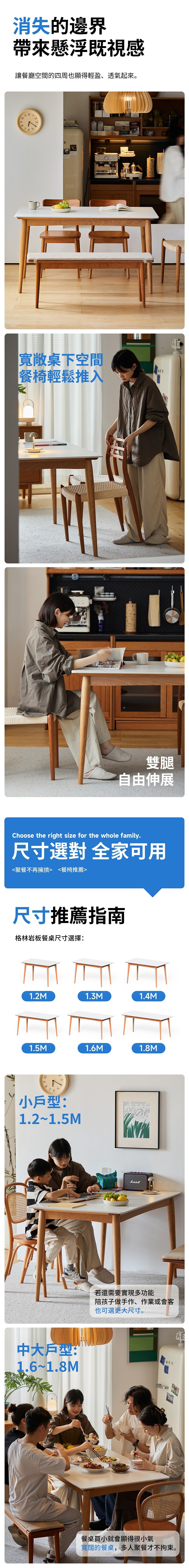 *注意:以下為情境示意圖,實際商品款式為格林櫻桃木岩板1.4M餐桌-白色