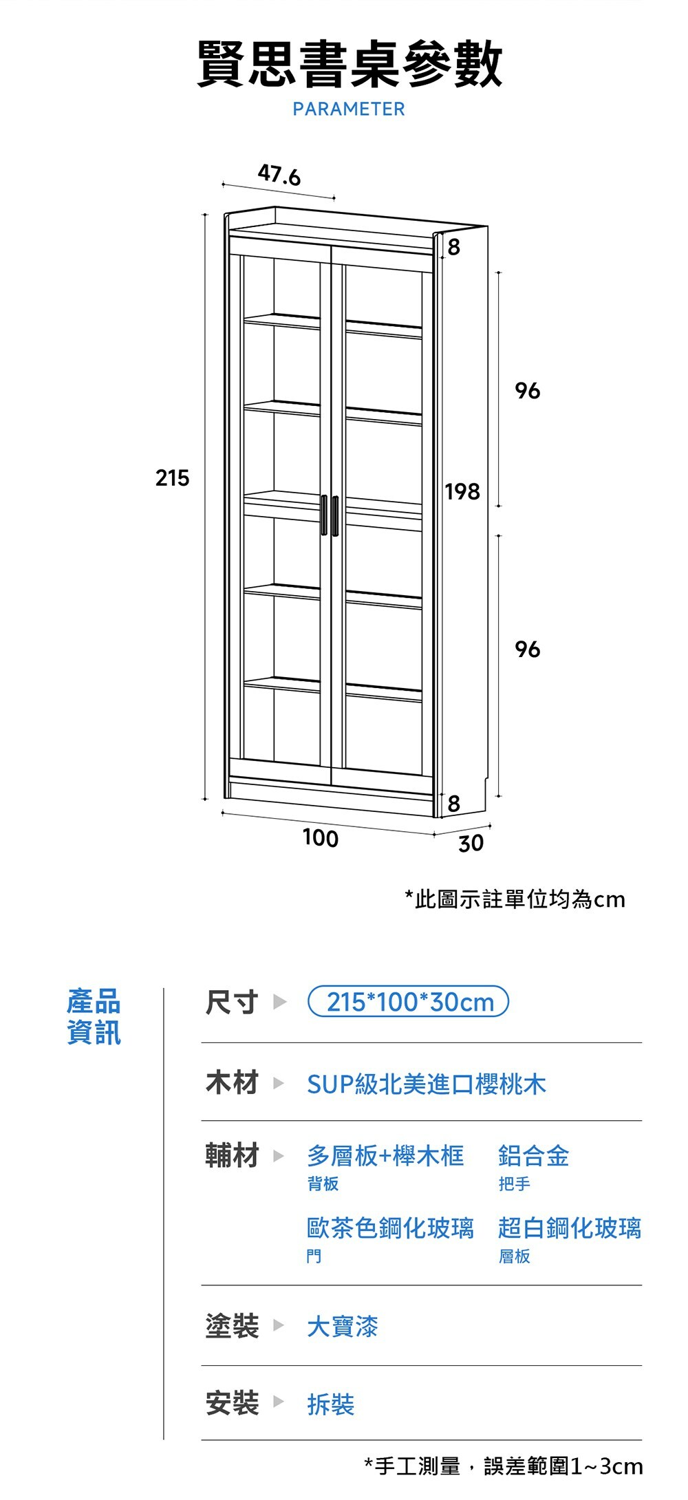 *注意:以下為情境示意圖,實際商品款式為賢思櫻桃木雙門書櫃