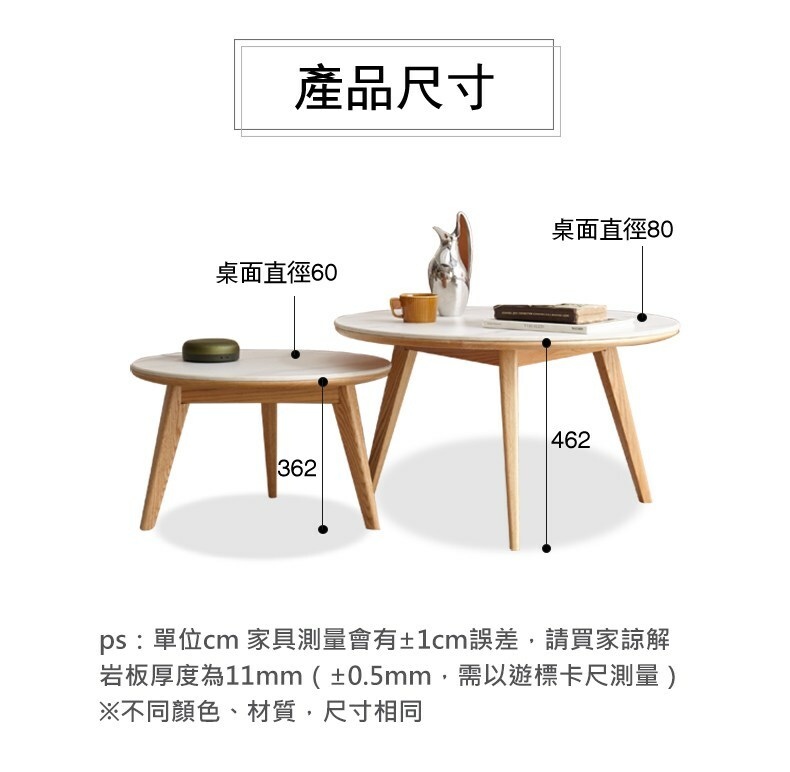 *注意:以下為情境示意圖,實際商品款式為光岩橡木原木色圓形岩板茶几組合 Y150J05