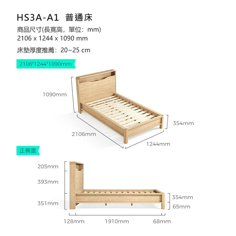 *注意:以下為情境示意圖,實際商品款式為北歐現代簡約床頭置物單人加大106x190床架 HS3A-原木色