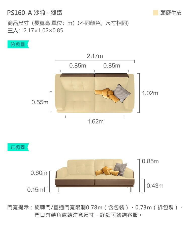 *注意:以下為情境示意圖,實際商品款式為復古氛圍頭層牛皮三人沙發 PS160-黑茶色