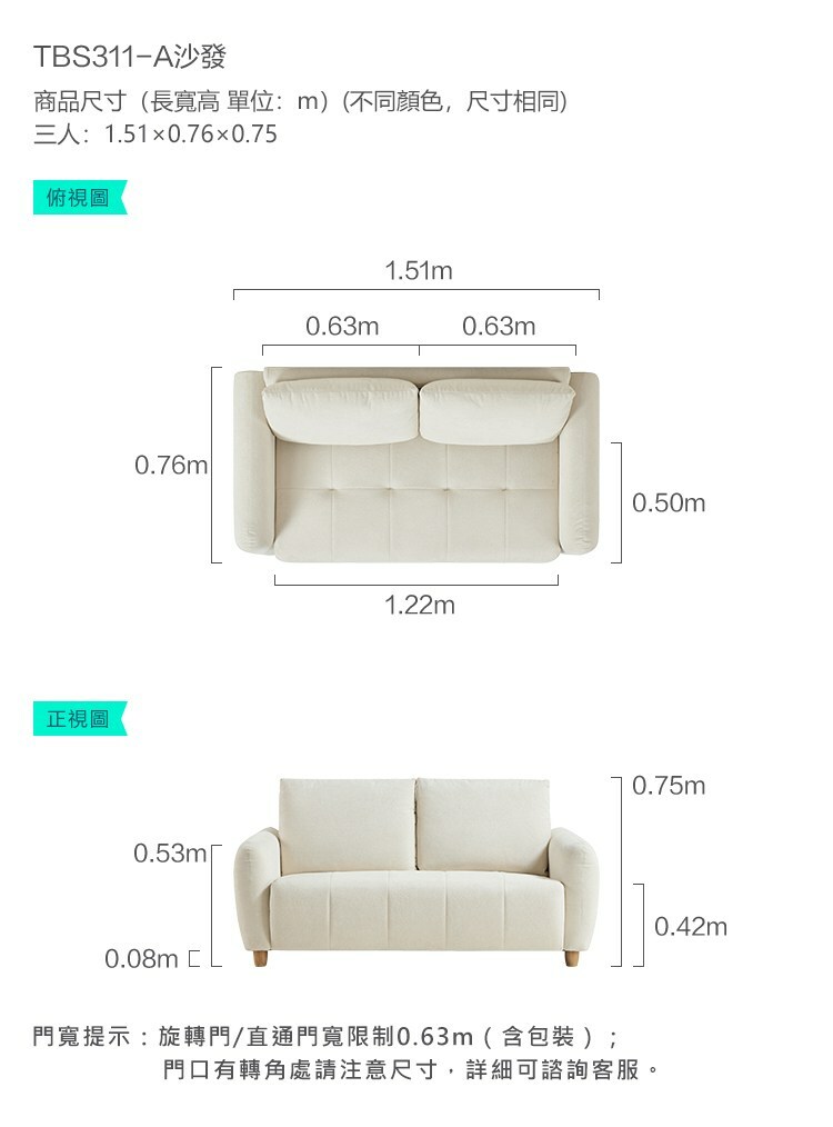 *注意:以下為情境示意圖,實際商品款式為小羊羔三人小沙發 TBS311-奶駝色