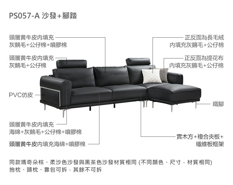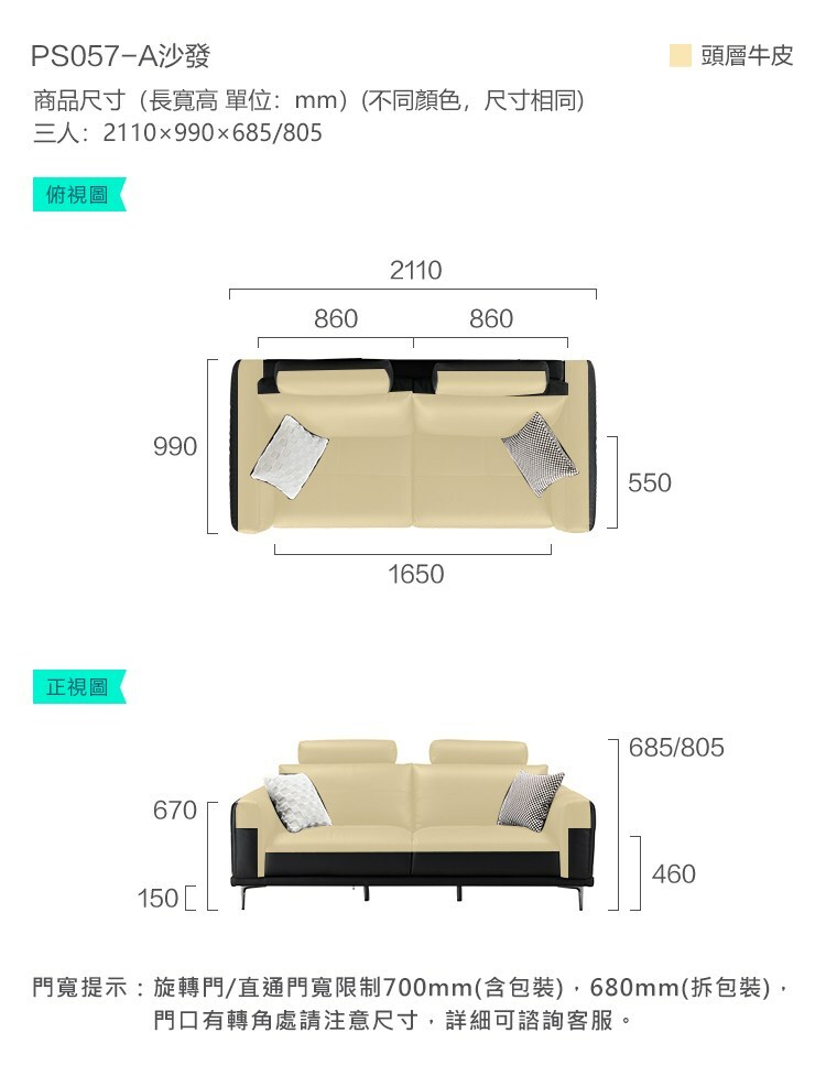 *注意:以下為情境示意圖,實際商品款式為現代簡約附頭枕頭層牛皮三人沙發 PS057-黑茶色