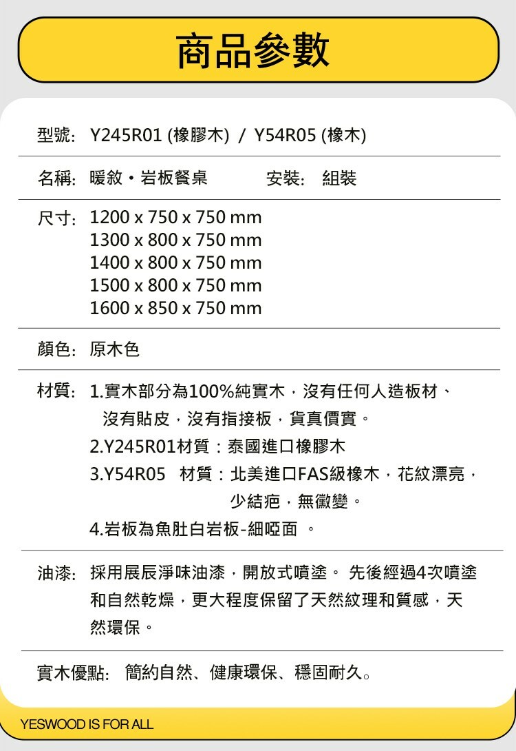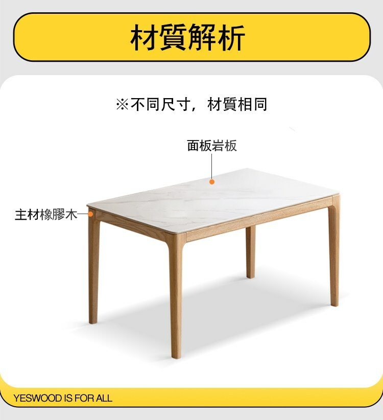 *注意:以下為情境示意圖,實際商品款式為暖敘橡膠木原木色岩板餐桌1.4M Y245R01 (不含椅子)