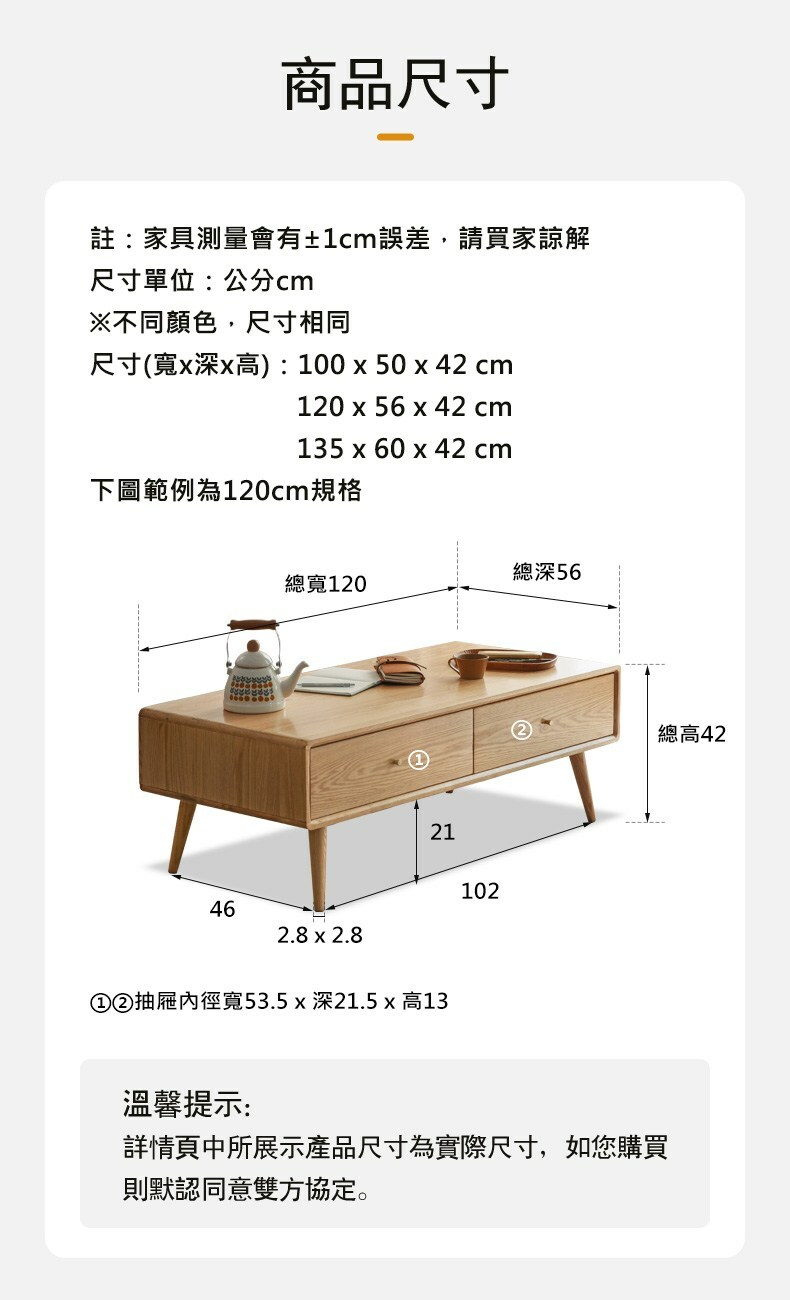 *注意:以下為情境示意圖,實際商品款式為布拉格橡木原木色四抽茶几1.2M Y84J06