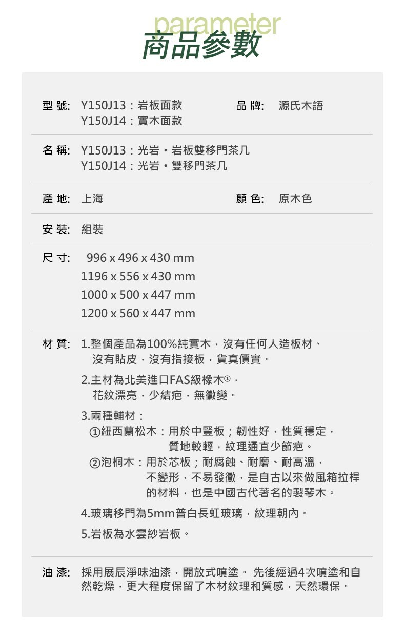 *注意:以下為情境示意圖,實際商品款式為光岩橡木原木色玻璃移門岩板茶几1M Y150J13