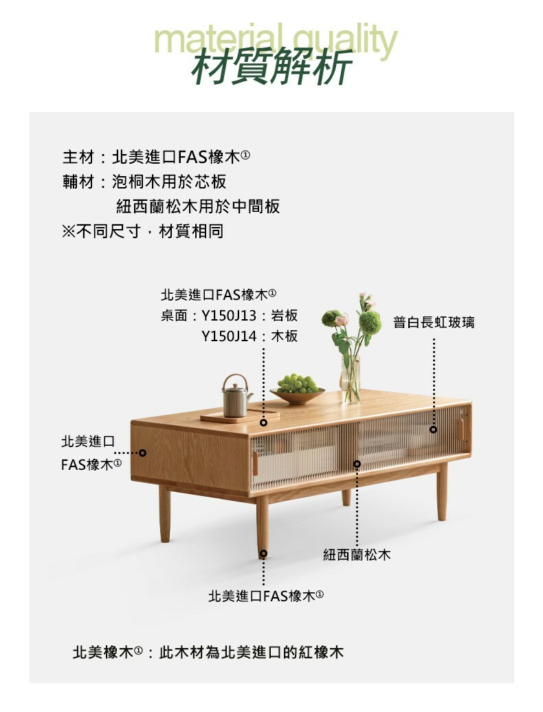 *注意:以下為情境示意圖,實際商品款式為光岩橡木原木色玻璃移門茶几1.19M Y150J14