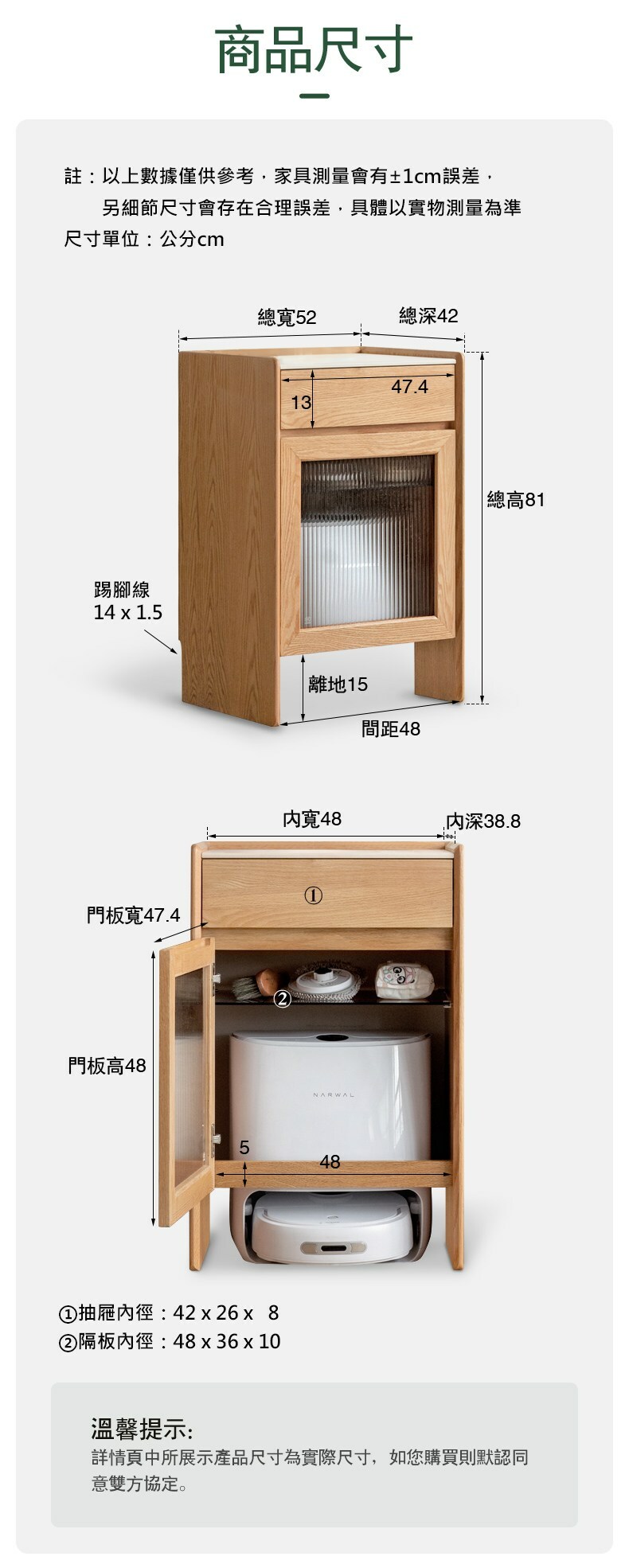 *注意:以下為情境示意圖,實際商品款式為平原橡木原木色掃地機器人岩板移動邊櫃 Y101M03