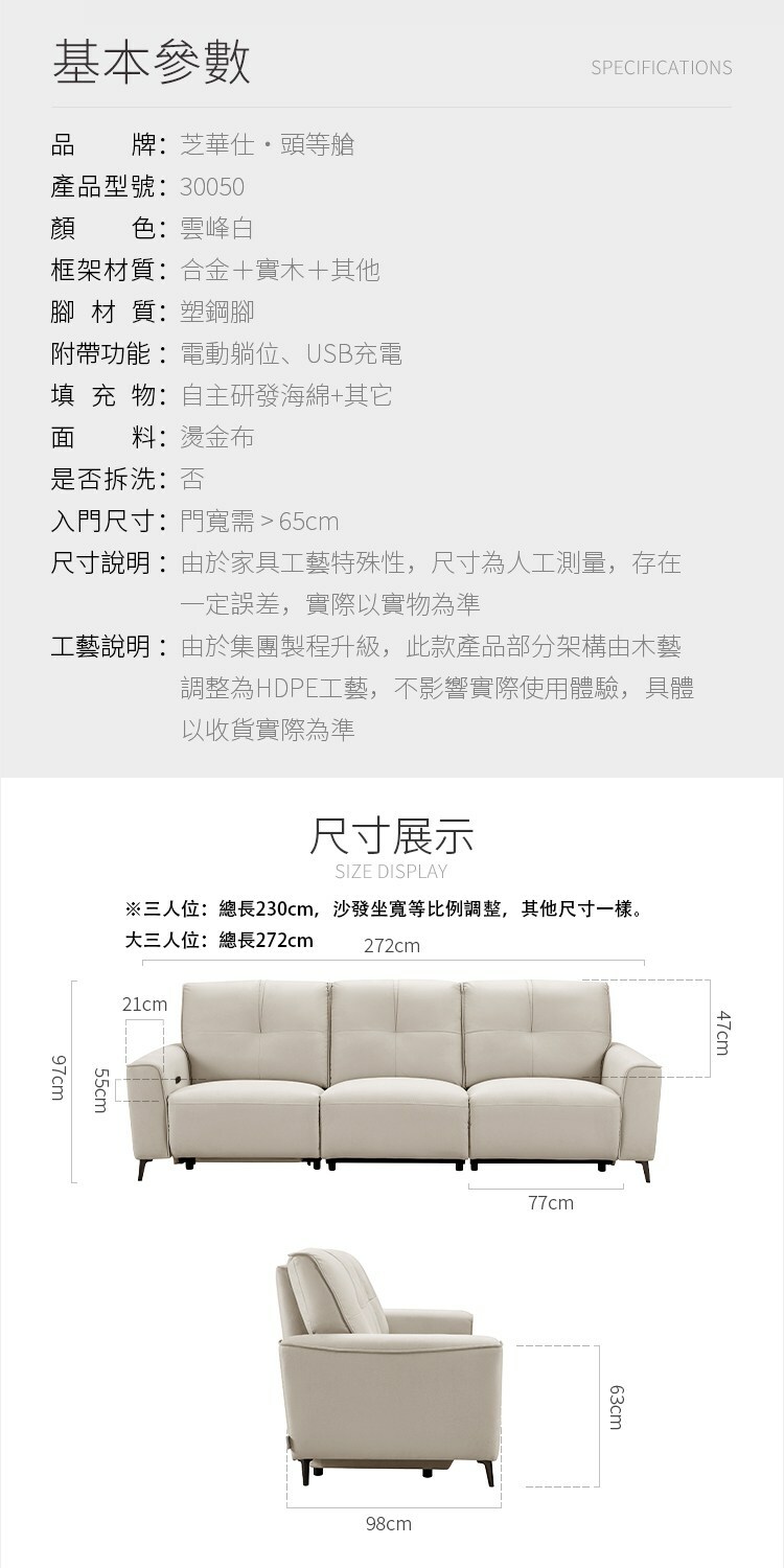 電動馬達保固6年,坐墊海綿保固5年,合金鋼架保固5年,沙發框架保固10年