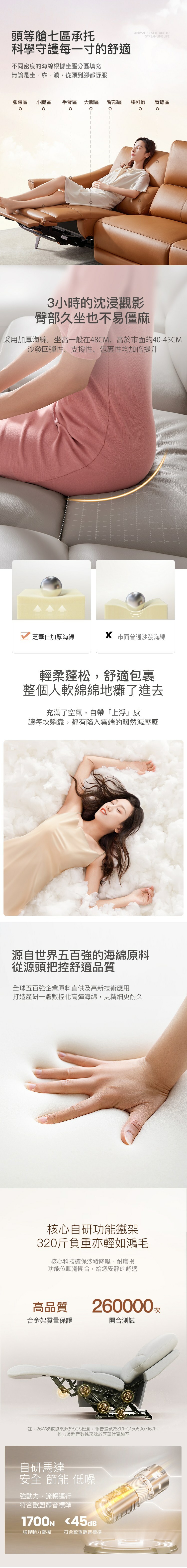 電動馬達保固6年,坐墊海綿保固5年,合金鋼架保固5年,沙發框架保固10年
