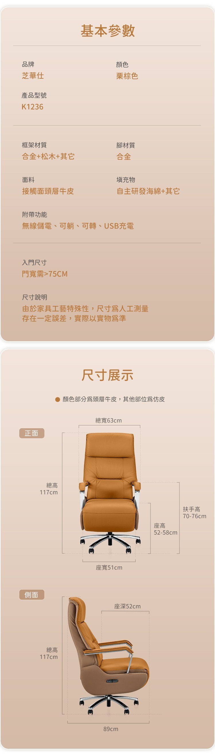 臻選進口頭層牛皮,觸感溫潤