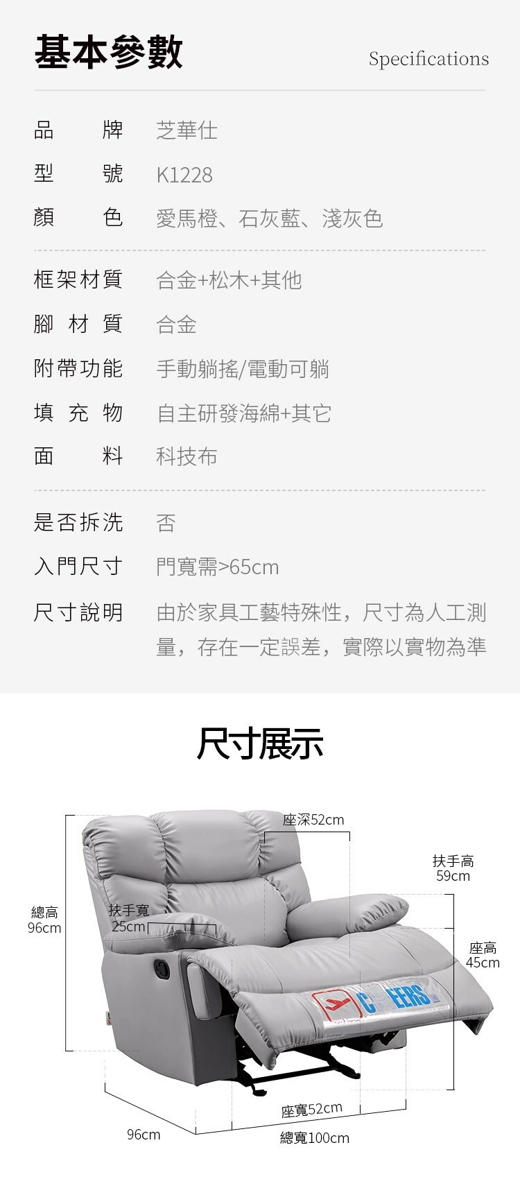 電動馬達保固6年,坐墊海綿保固5年,合金鋼架保固5年,沙發框架保固10年