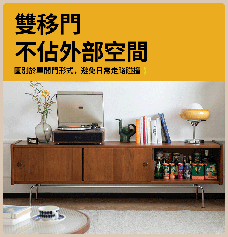 *注意:以下為情境示意圖,實際商品款式為銀鹽黃楊木雙門三抽電視櫃1.8M