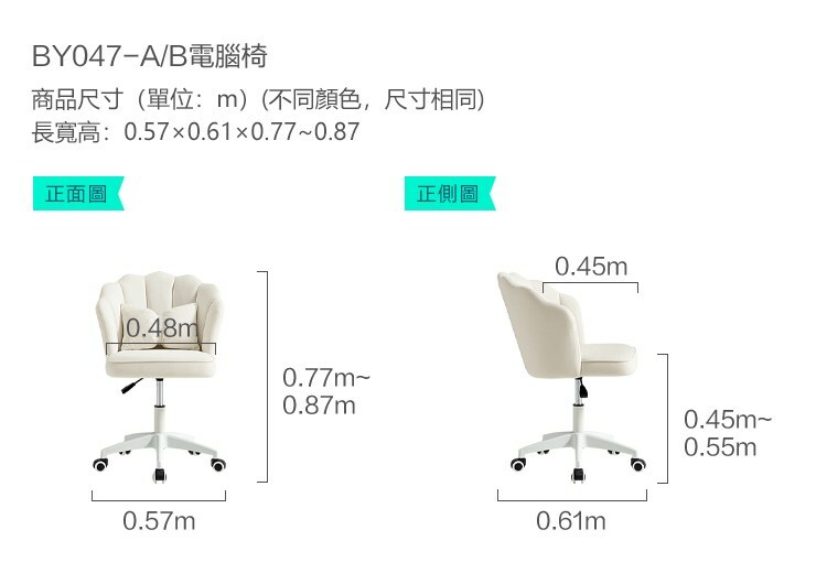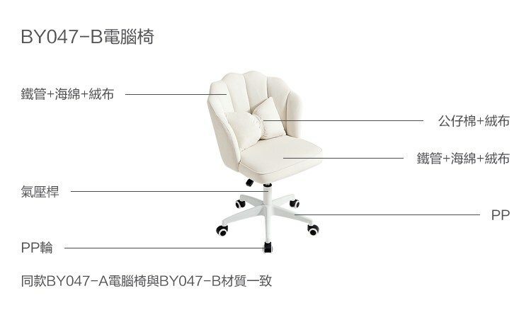 *注意:以下為情境示意圖,實際商品款式為奶油風貝殼電腦椅 BY047-奶油白