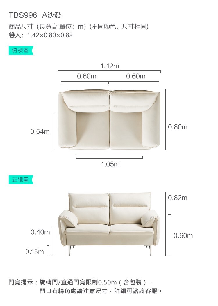 *注意:以下為情境示意圖,實際商品款式為柔軟小方小戶型科技布雙人沙發 TBS996-米色