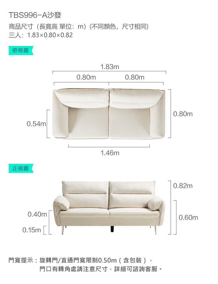 *注意:以下為情境示意圖,實際商品款式為柔軟小方小戶型科技布三人沙發 TBS996-米色