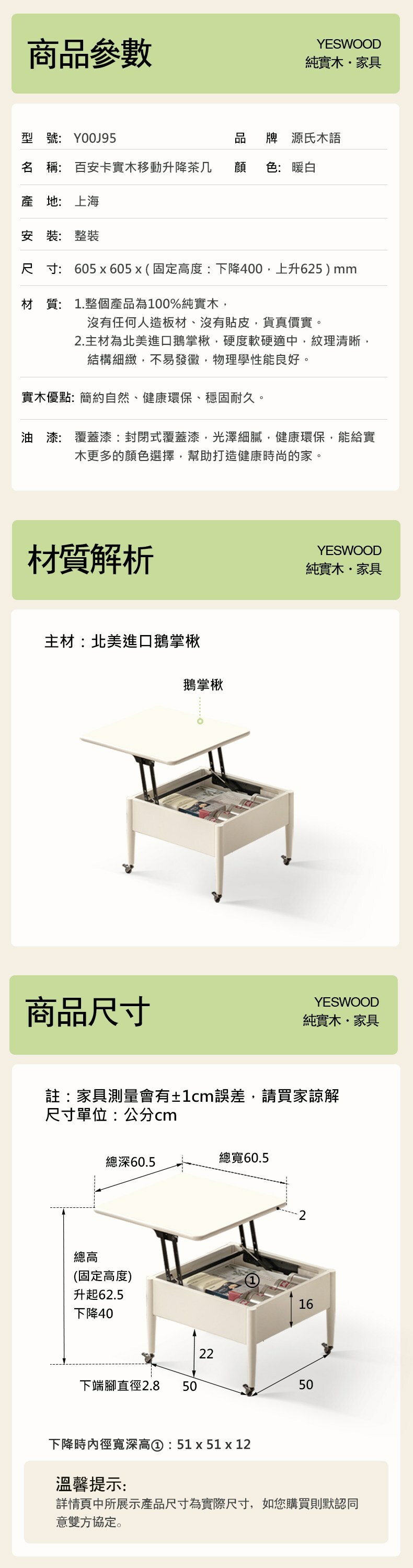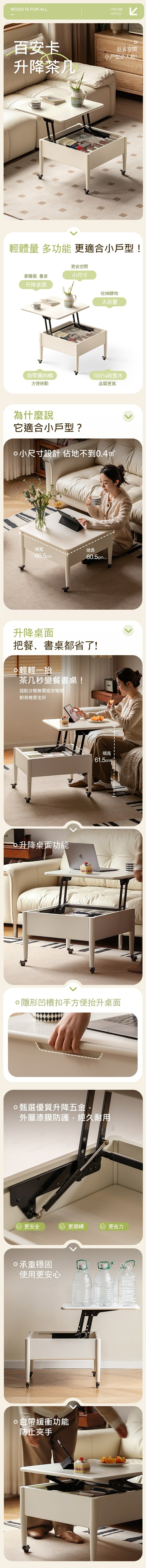 *注意:以下為情境示意圖,實際商品款式為百安卡實木移動升降茶几 Y00J95