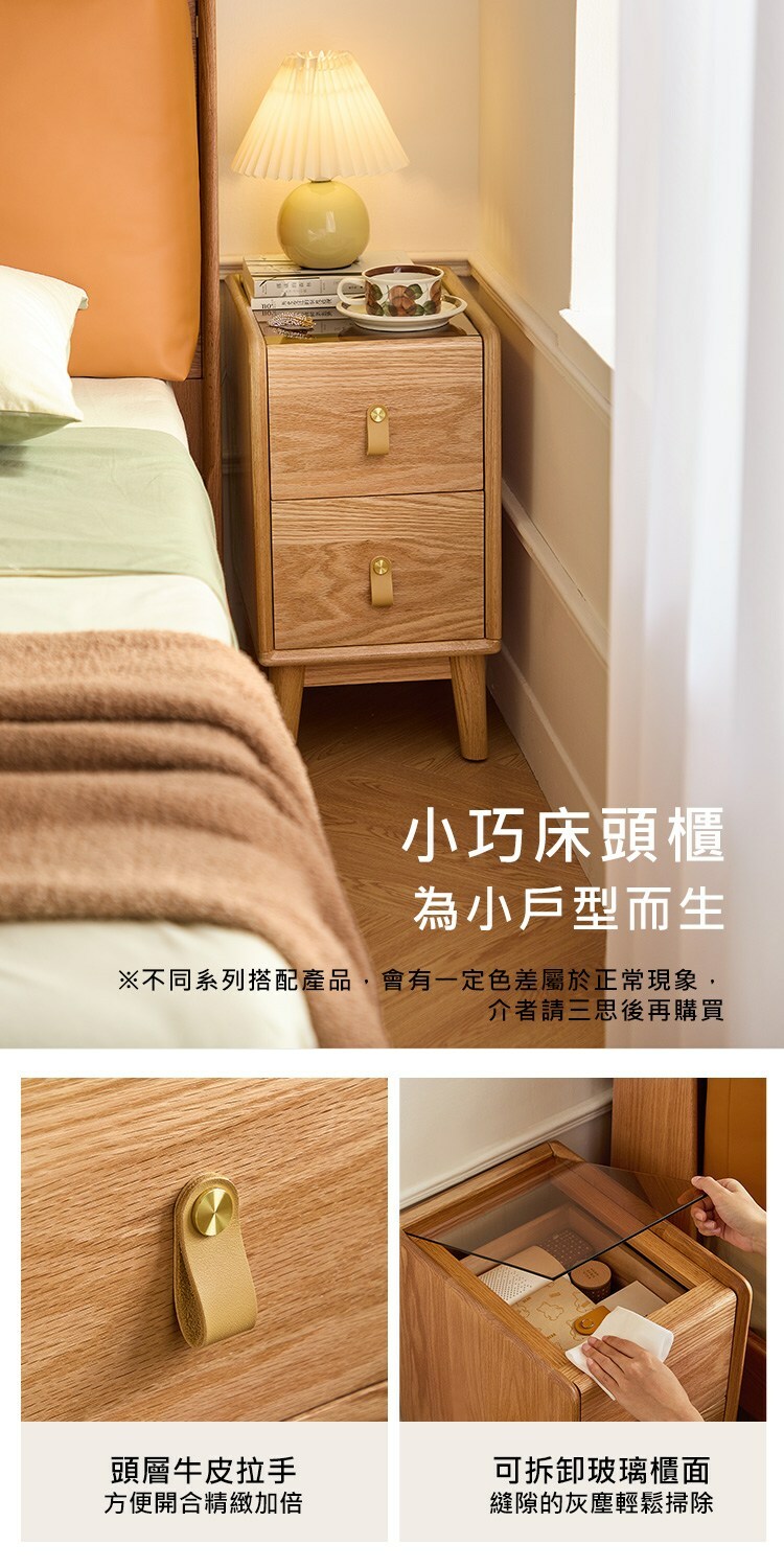 *注意:以下為情境示意圖,實際商品款式為巨好宅系列橡木實木窄版雙抽床頭櫃 LH112