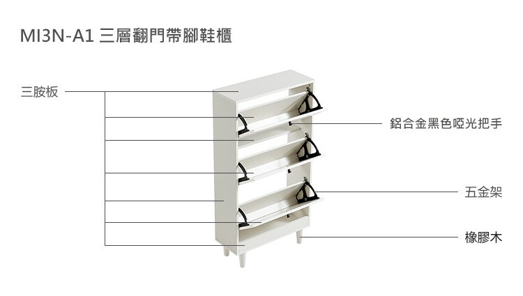 *注意:以下為情境示意圖,實際商品款式為小方糖系列薄型三層翻門高腳鞋櫃 MI3N
