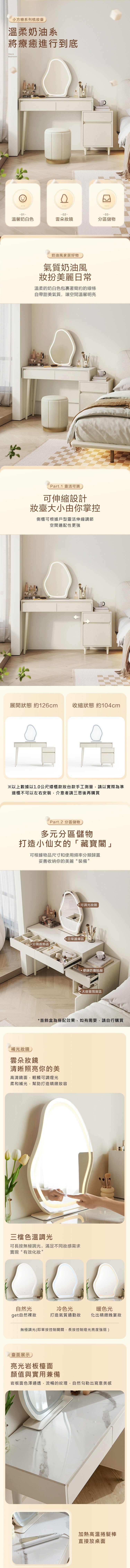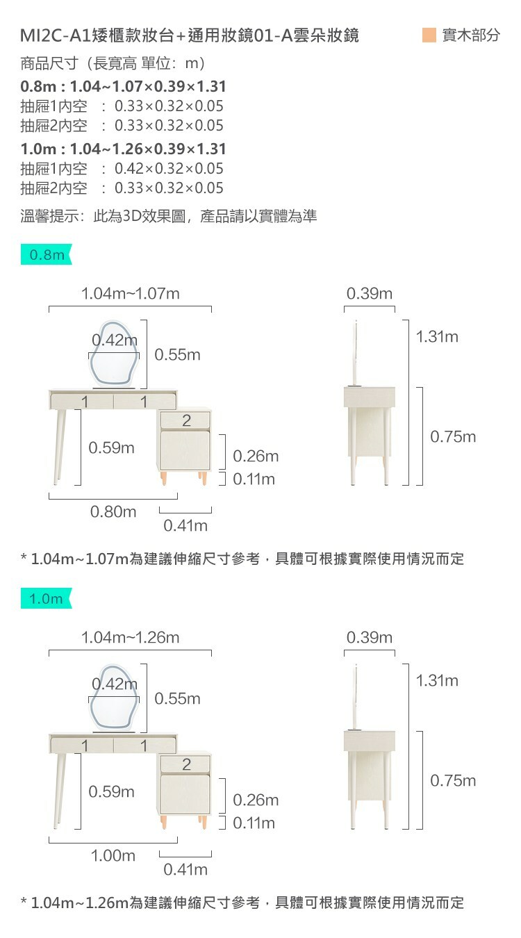 *注意:以下為情境示意圖,實際商品款式為小方糖系列矮櫃0.8M附鏡伸縮化妝桌 MI2C