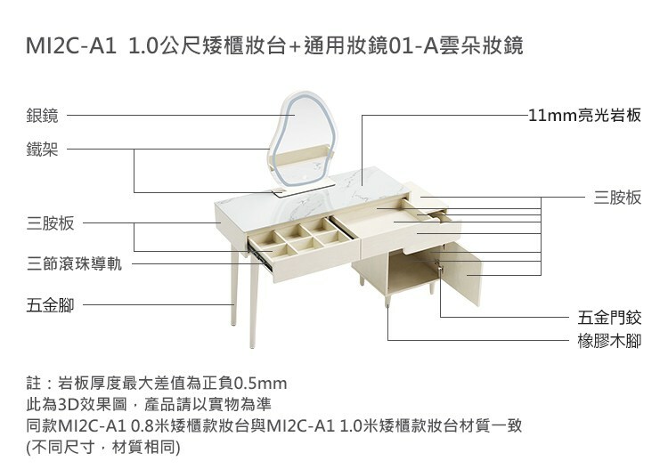 *注意:以下為情境示意圖,實際商品款式為小方糖系列矮櫃1M附鏡伸縮化妝桌 MI2C