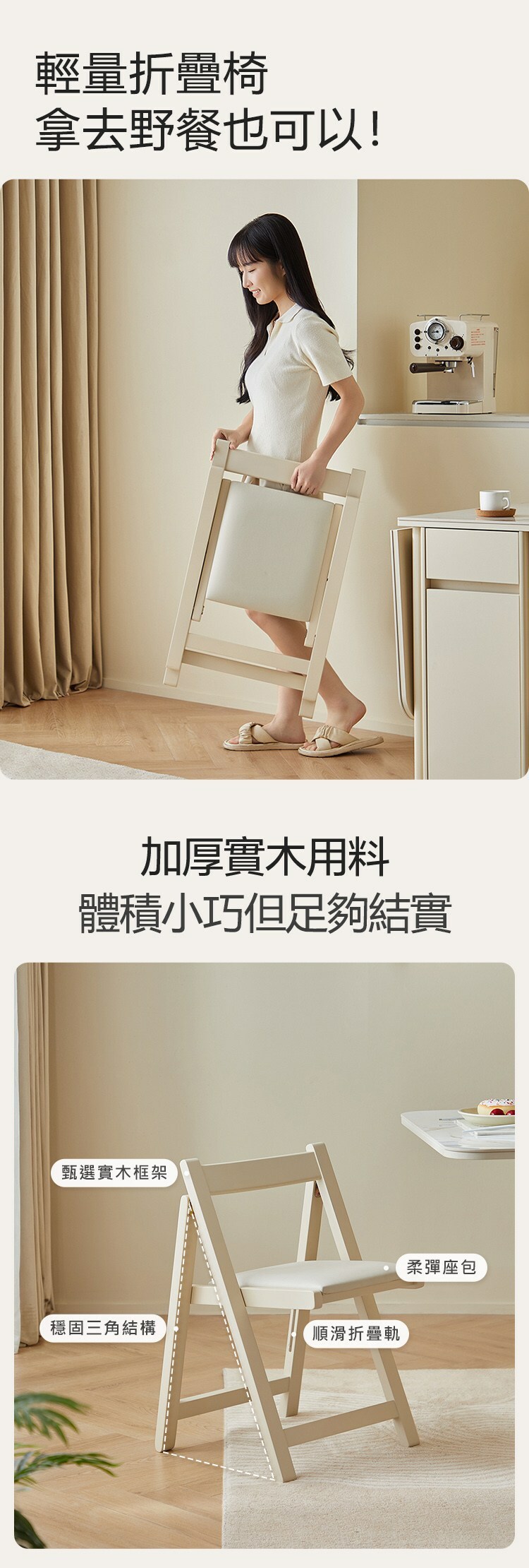 *注意:以下為情境示意圖,實際商品款式為奶油侘寂風摺疊餐椅兩入組 NU1S