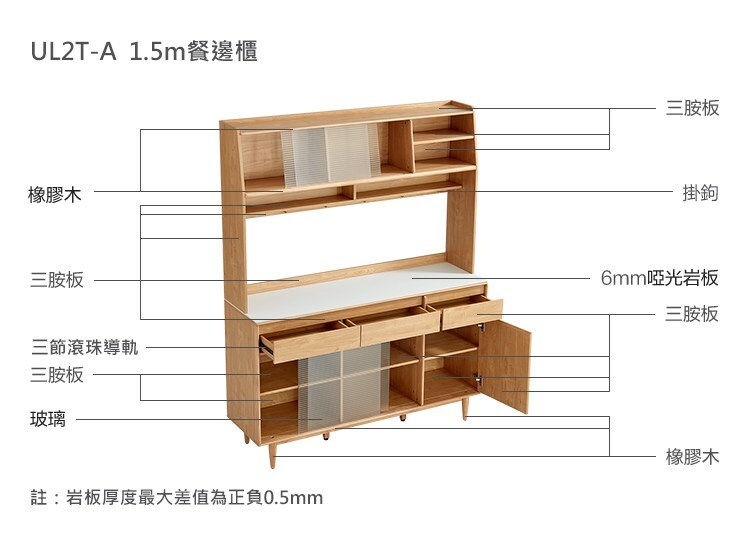 *注意:以下為情境示意圖,實際商品款式為北歐原木風云倉1.5M岩板餐邊高櫃 UL2T