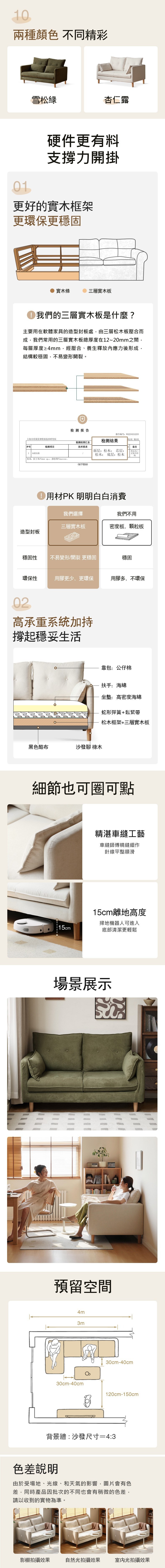 *注意:以下為情境示意圖,實際商品款式為奶油風實木小雙人座布沙發1.4M S03230 松綠