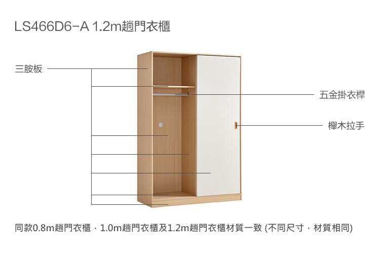 *注意:以下為情境示意圖,實際商品款式為北歐小戶型1.2M滑門衣櫃 LS466-原木+白色