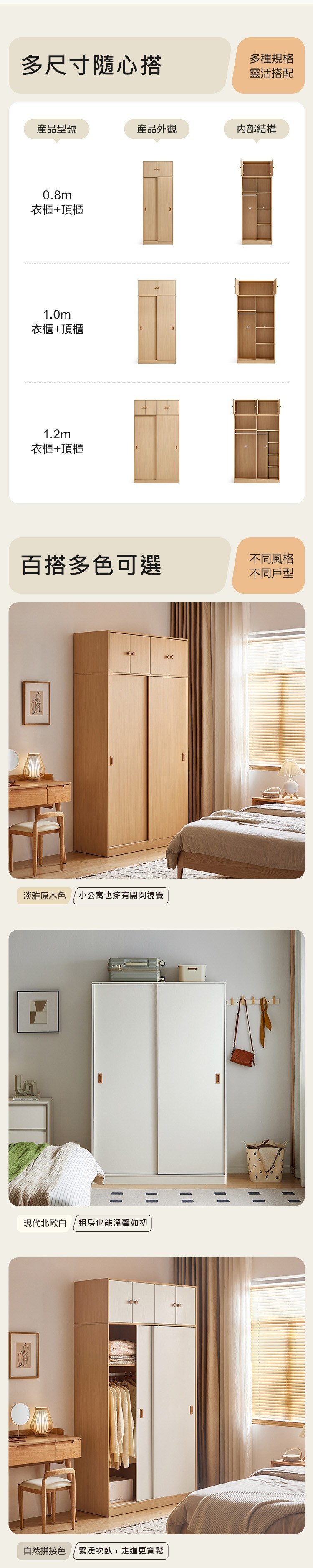 *注意:以下為情境示意圖,實際商品款式為北歐小戶型0.8M滑門衣櫃 LS466-原木色