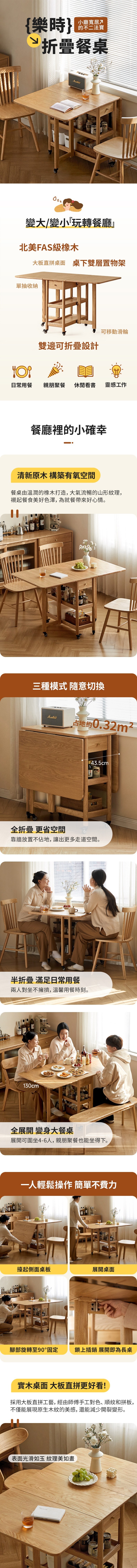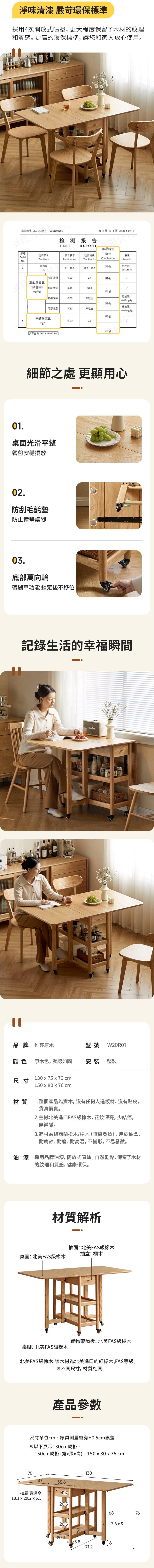 *注意:以下為情境示意圖,實際商品款式為原木日式橡木可移動收納折疊餐桌1.3M W20R01