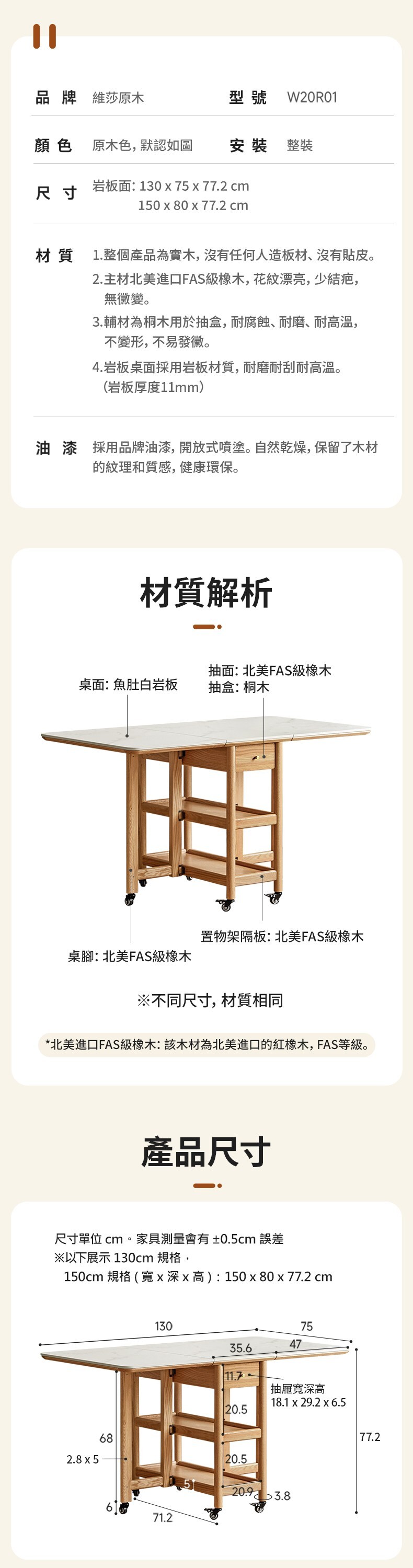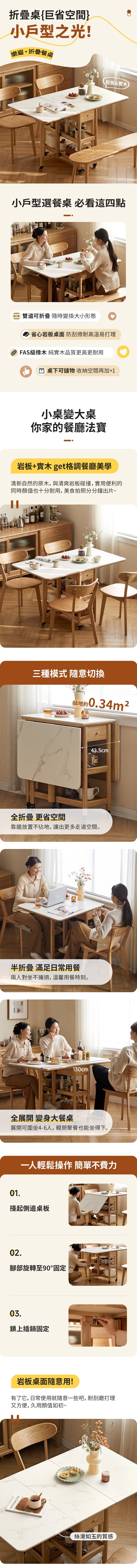 *注意:以下為情境示意圖,實際商品款式為原木日式橡木可移動收納折疊岩板餐桌1.3M W20R01