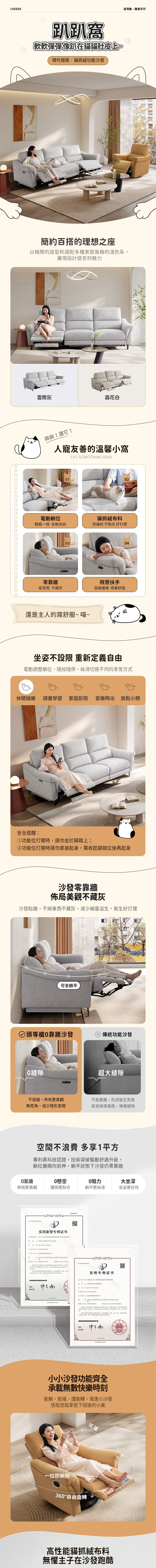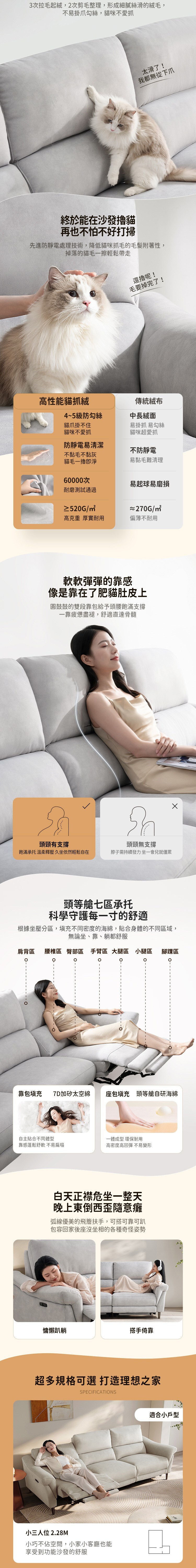 親膚貓抓絨,觸感柔順,表面防黏毛易清潔