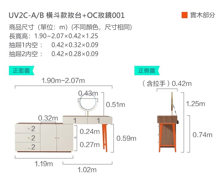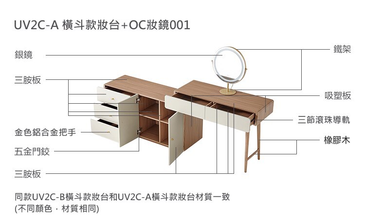 組合:UV2C-A寬斗櫃(橫斗款)化妝台+OC妝鏡001