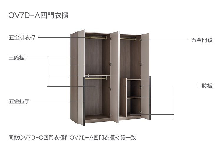 *注意:以下為情境示意圖,實際商品款式為簡約雙色四門衣櫃 OV7D-原木+灰