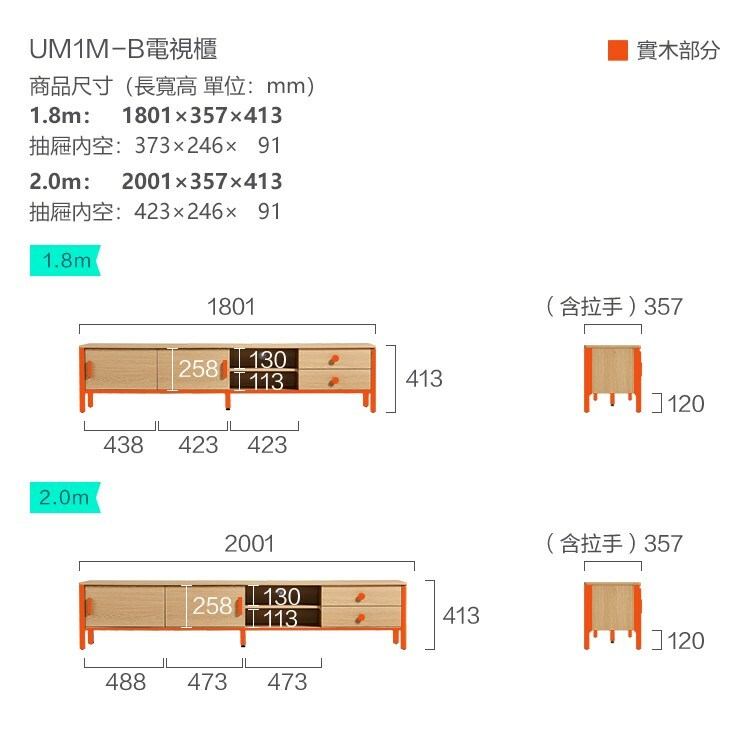 *注意:以下為情境示意圖,實際商品款式為北歐簡約二抽滑門電視櫃2M UM1M