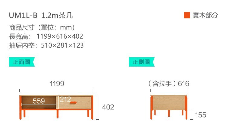 *注意:以下為情境示意圖,實際商品款式為北歐簡約二抽儲物茶几1.2M UM1L