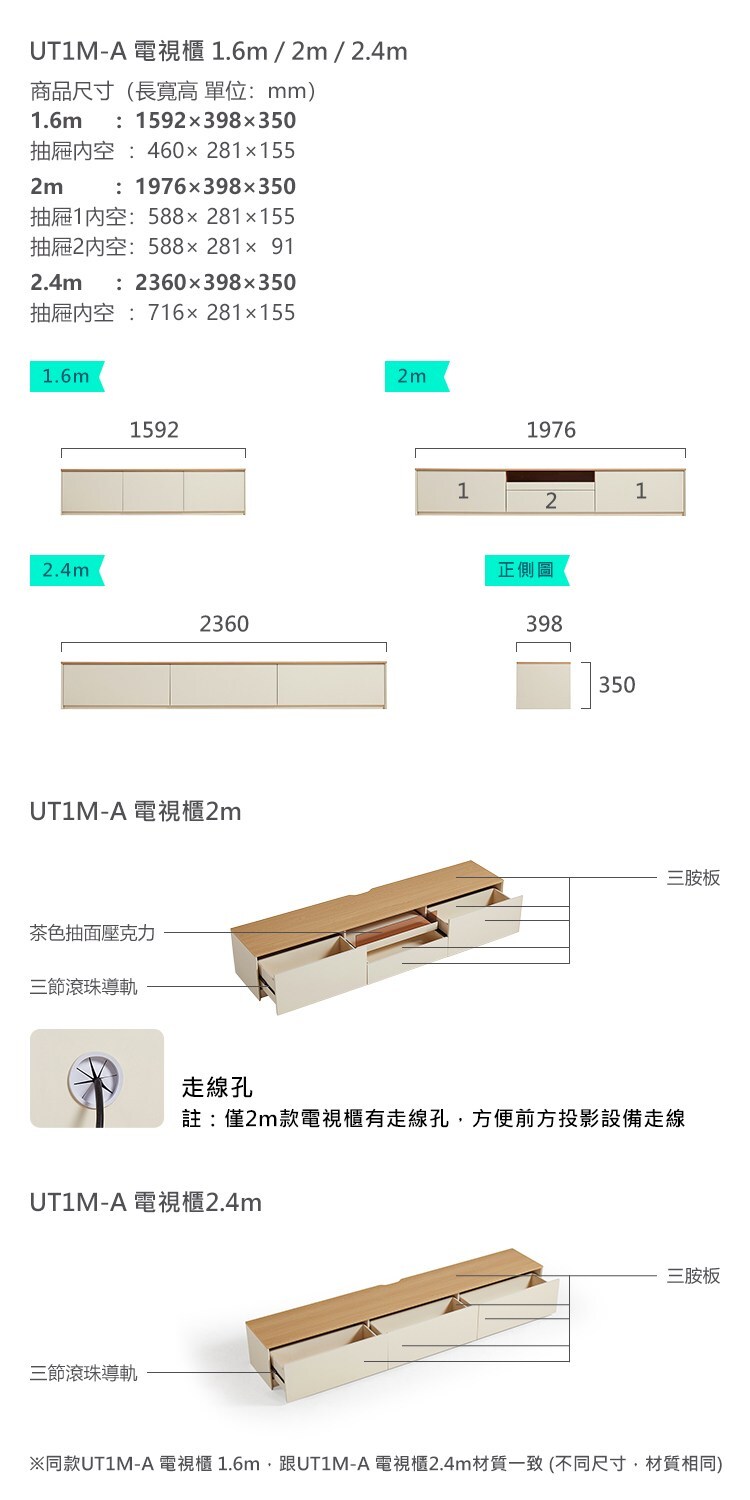 *注意:以下為情境示意圖,實際商品款式為北歐簡約拼色三抽儲物電視櫃1.6M UT1M