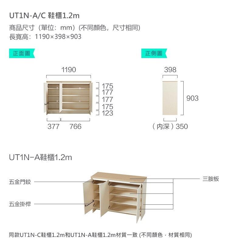 *注意:以下為情境示意圖,實際商品款式為北歐簡約拼色三門鞋櫃1.2M UT1N 原木色+白色